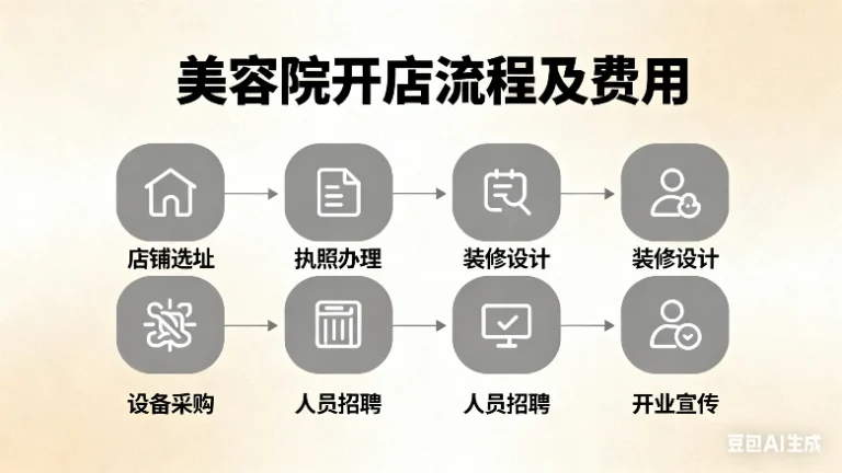 美容院开店主要遵循 “资质办理→选址装修→设备产品采购→人员...