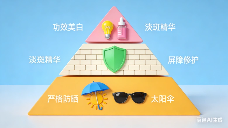- 搭配建议:早上使用“抗氧化(VC)+防晒”,晚上使用“美白精华(如含烟酰胺、氨甲环酸、377等)+修复保湿产品”。