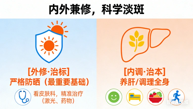 简单来说:长斑了,别只盯着“肝”这一个原因。正确的做法是“内外兼修”:对外做好皮肤护理和防晒,对内调理身体和情绪,并在专业医生指导下进行科学治疗。