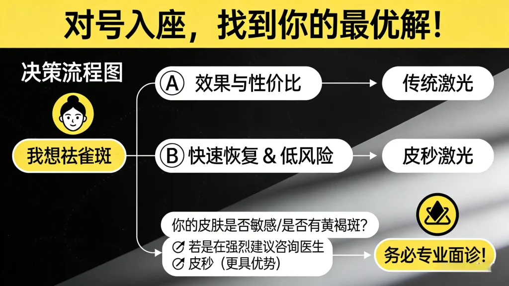最终决策路径:找一位可靠的皮肤科医生 → 进行专业面诊评估 → 结合医生的建议、您的个人情况和预算 → 选择最合适的治疗方案。