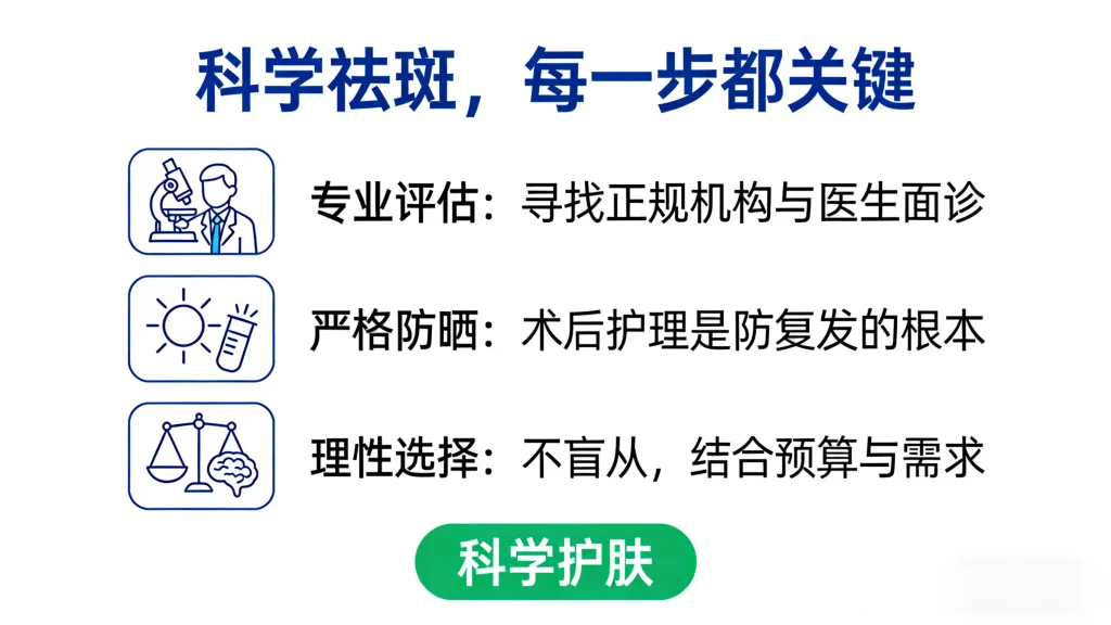无论选择哪种,术后的护理(防晒+保湿)都同等重要,这是保证效果和防止复发的根本。祝您顺利解决烦恼!