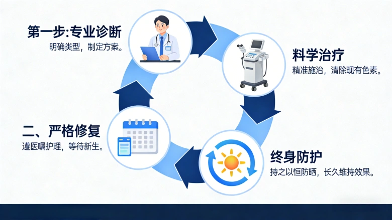 - 维持期:在严格防晒的前提下,效果可以维持数年甚至更久。即使未来有少量、轻微的复发,其程度也远轻于治疗前,并且可以通过低能量的保养型治疗(如光子嫩肤)轻松维持。