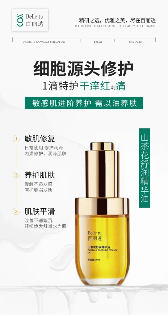 • 山茶花舒润精华油: 冬季干皮/混干皮必备!在水后使用,补充皮肤缺失的油脂。